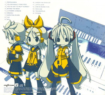Das Design dieser Ausgabe der Figur basiert nämlich auf dem Coverart der Rückseite dieser Orchester CD. Die CD ist nämlich in Japan so berühmt geworden das sie ihre eigenen Figuren bekam. (Daher kommt es das sie auf einmal so süße lange Ärmel hat etc.). Es gibt sogar Sticker dazu um das aussehen von Rin und Len auch dem der CD anzupassen.